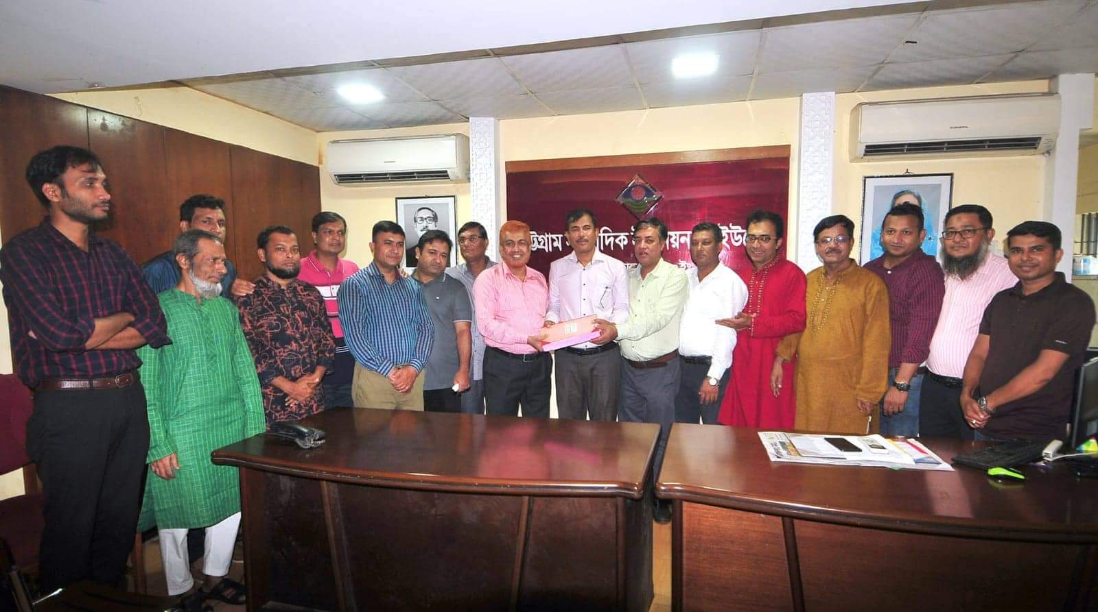 দায়িত্বভার গ্রহণের পর সিইউজে’র নবনির্বাচিত কমিটির সদস্যরা চট্টগ্রাম প্রেস ক্লাব চত্বরে বঙ্গবন্ধু শেখ মুজিবুর রহমানের প্রতিকৃতিতে শ্রদ্ধা নিবেদন করেন।