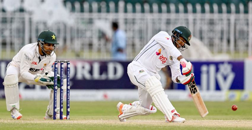 পাকিস্তানের বিপক্ষে দুই ম্যাচের টেস্ট সিরিজের প্রথম ম্যাচে ১০ উইকেটের জয় পেয়েছিল বাংলাদেশ। সেই পারফরম্যান্সের ধারাবাহিকতা দ্বিতীয় ম্যাচেও ধরে রেখেছে টাইগাররা। এতে সিরিজ জয়ের সুবাস পাচ্ছে শান্ত বাহিনী, এতে হোয়াইটওয়াশের শঙ্কায় রয়েছে পাকিস্তান। জয়ের জন্য ১৪৩ রান দরকার সফরকারীদের। হাতে রয়েছে পুরো একটি দিন এবং ১০ উইকেট।