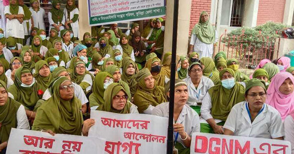নার্সিং ও মিডওয়াইফারি অধিদপ্তরের মহাপরিচালকসহ বিভিন্ন গুরুত্বপূর্ণ পদ থেকে বিসিএস কর্মকর্তাদের অপসারণ চেয়ে ৩ ঘণ্টার কর্মবিরতি পালন করেছে নার্সিং মিডওয়াইফারি সংস্কার পরিষদ নামের একটি সংগঠন।